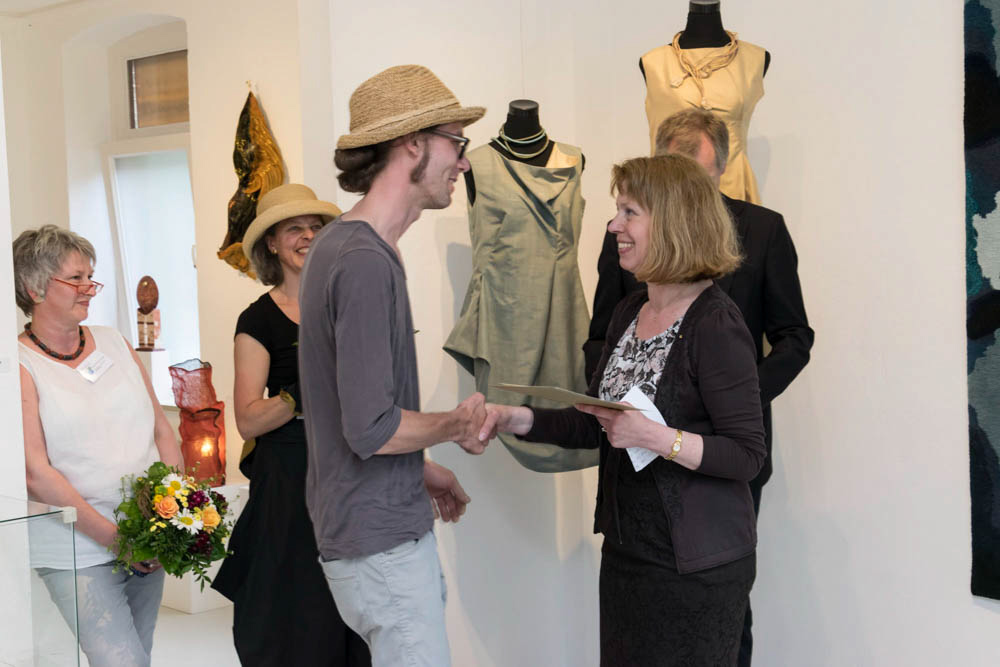 Den Preis der Fachjury sowie ein privat gestifteter Preis erhielt Mirja Wark (Textil/Weben), der Publikumspreis ging an Stefan Ehlert (Holz/Lichtobjekte)